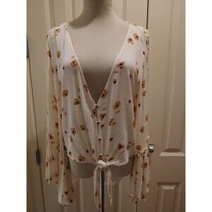 DARLING BILLABONG "LUST WILD TOP" TIE-UP CROP TOP W/BELL SLEEVES SIZE SMALL. THE BUST IS 42" AROUND AND LENGTH IS 20". IN GREAT CONDITION! NO FLAWS.