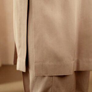 If there ever was a perfect lightweight trench, this is it. Made of a luxurious and flowy fabric, it's a stunning layering piece and can also be worn buttoned up as a dress. The color lies beautifully between beige and tan, providing a soft neutral tone that goes with literally anything in your closet, including all of our capsule pieces. With a tie belt, beautiful horn style buttons, lovely pleats, side slits and a back flap, its intentional design is what sets us apart. Whatever you pair this with, it creates the ideal jetsetter look, perfect for your adventurous heart.