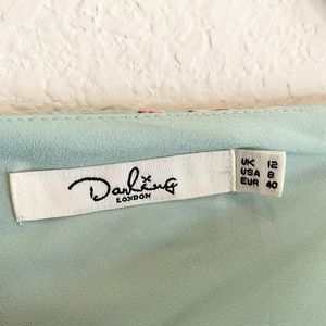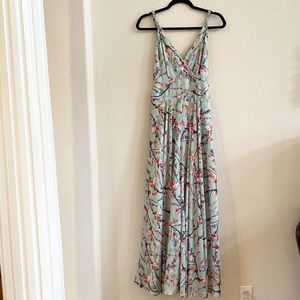 Darling London Size 8 Green Pink Maxi Dress Sleeveless Floral Tie Back Lined