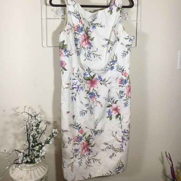 It's very sophisticated and classy. 💯 % Cotton and fully lined (polyester). Zips at the back with a small slit at the bottom. Full length is 39", waist laying flat is 18" and P2P is 21". Size says 16, fits more like a 14. It's such a lovely dress 😍☺️😊