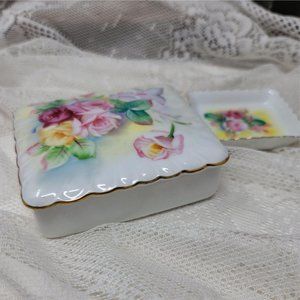 Darling Trinket Box w Tray Vintage Porcelain Flora