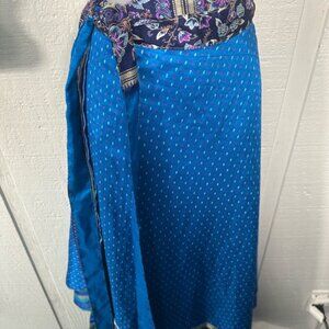 Darn Good Yarn Women’s Blue Silk Sari/ Wrap Skirt One Size NWT