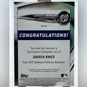 2022 Bowman Platinum Top Prospects Autographs #TOP-62 Darren Baker