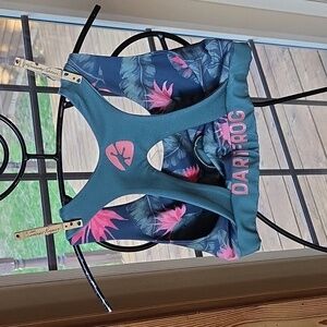 DartFrog Floral Sports Bra with Pink and Teal Design Sz. L