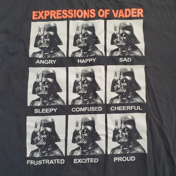 Darth Vader Star Wars "Expressions of Vader Angry Happy Sad"Large Black T-shirt