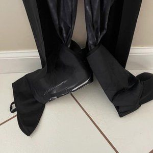 Size child or adult small. Very good condition includes mask boot looking material goes over your shoes but whole costume is together with the mask.