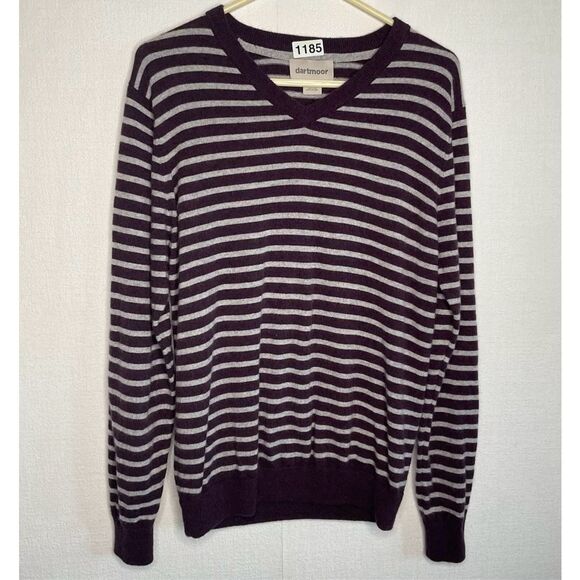 This dartmoor 100% Cashmere Men's L Purple Gray Bar Stripe Jumper V-neck Sweater