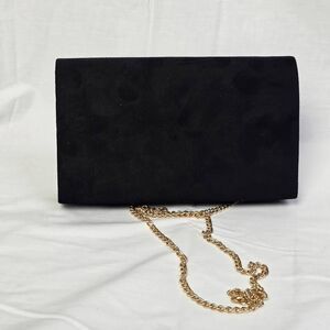 Dasein Black Suede Envelope Clutch with Gold Chain