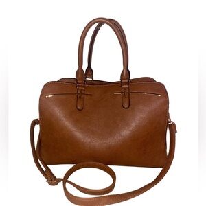 Dasein Satchel Handbag Shoulder Bag Tote Vegan Textured Leather in Brown/Gold