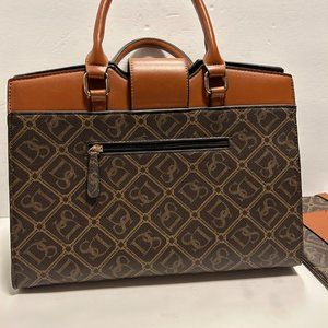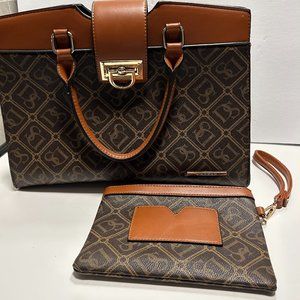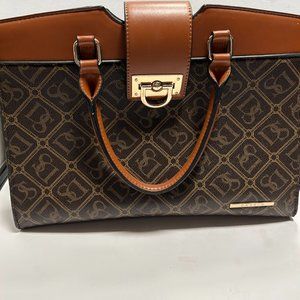 Dasein Women Top handle Handbags Monogram Satchel Bags Work Tote w Strap Brown
