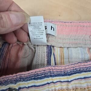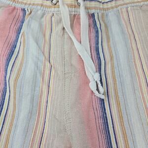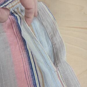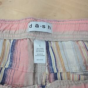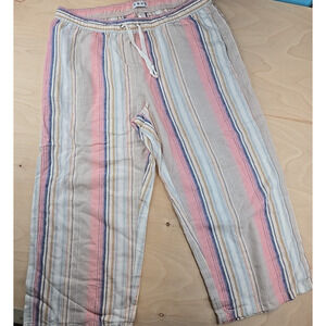Dash Da-sh Beige/Pink/Blue Women's Linen Blend Capri Striped Cropped Pants L