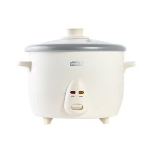Color/finish: cream/matte Design details: Easy to Use: Simply plug in, add water and rice, then start cooking with just one touch! Measures 12.6in x 6.69in x 9.84in Capacity: 20 Cups Materials: ceramic non-stick Hand wash 120V Imported Contents of Set: body, removable pot, lid, mixing paddle, measuring scoop