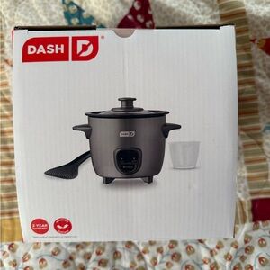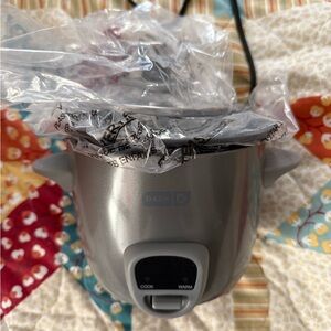Compact and efficient mini rice cooker. Features a sleek gray design. Perfect for small kitchens. In perfect working condition. Only used 3 times but my mom got me a larger one for my birthday, so this one is now unneeded!
