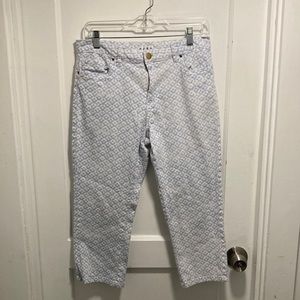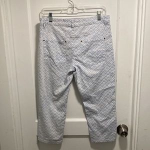 Dash Cropped Blue and White Geometric Patterned Straight Leg Pants