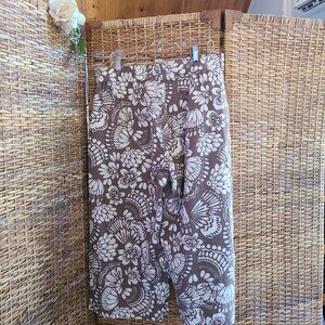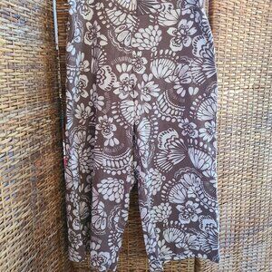 Dash Wide Leg Cropped Pants Sz Large Taupe W/ White Flower Linen Rayon Blend