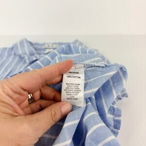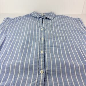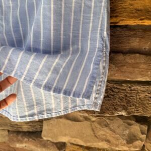 Da-sh XL Striped Blue White Cap Sleeve Button Up Women's Cotton Blouse Coastal