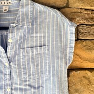 Da-sh XL Striped Blue White Cap Sleeve Button Up Women's Blouse Top Size XL