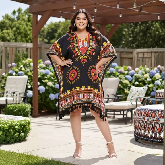 Dashiki Printed Black Polyester Short Caftan Tunic Dress for Women by Gypsie Blu