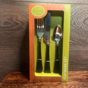 Dash of That Nora 12 Piece Stainless Steel Flatware with Sleek Black Handles. Brand new in box!