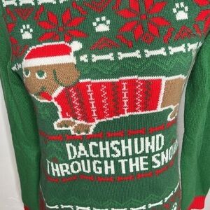 Dashund through the snow Ugly Christmas Sweater Sz small