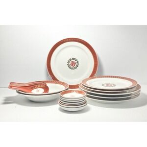 Datang Tatung 25-Piece Porcelain Dinnerware Set No chips, cracks, or fleabites. Set Includes 10 Chinese Spoons 5 1/2” 5 Butter Pats 3 1/2” 4 Dinner Plates 9 3/8” 2 Soup Bowls 8” 2 Salad Plates 8 1/4” 2 Coasters 3 7/8” Total 25