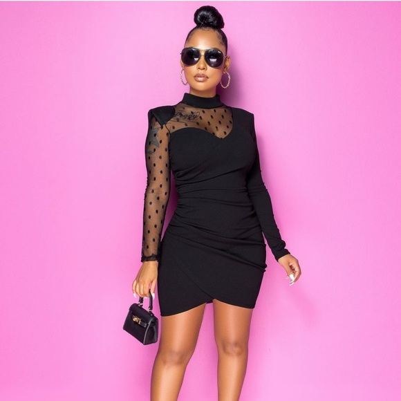 Sexy little 🔥Dress, baby breath dot,, back zipper , Mesh panel, Minimum stretch. Small = 4/6 6/8. Med. 7/8 Sz large 9/10 1X fits 12/14 2X =14. 3X =14/16 16/18
