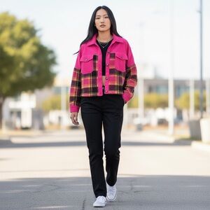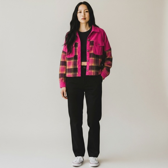 OVERSIZED CORDUROY AND PLAID PATTERN FLEECE JACKET