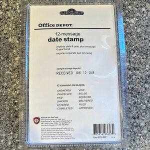 Efficiently manage your documents with the date stamp. Featuring red and gray accents, this stamp offers 12 common messages for versatile use.