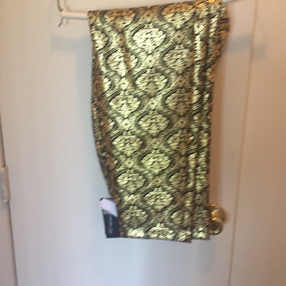 Metallic black and gold skinny leg pants
