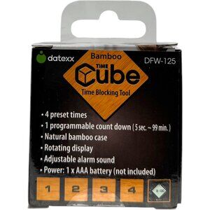 Keep your day on track with the Datexx Bamboo Time Cube (DFW-125) — a modern digital timer built for focus and simplicity. Just flip the cube to start preset countdowns or set custom times up to 99 minutes.