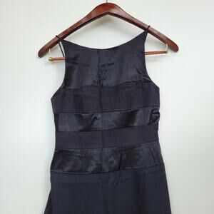 Features: spaghetti straps, hidden zipper closure, lined, rear slit, satin paneling