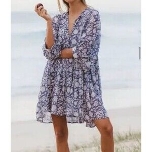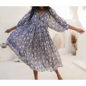 Daughters Of India Kyra Midi Dress Blue Iris S Floral Cottage Beach Resort Relax