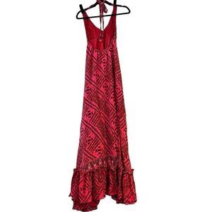 Daughters Of The Revolution Geometric Open Back Ruffle Hem Halter Maxi Dress Red Pink Size 2