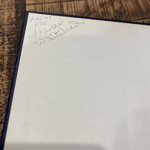 Used—see photos for condition. It has writing on the inside cover (it appears to be the original owner) and notes inside the book.