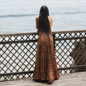 Daughters of India Chaaya Brown Floral Maxi Dress