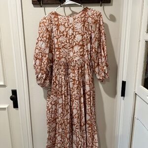 Love this dress! It's so beautiful and flattering for all sizes. Perfect condition. Always hung to dry. Just wanting to rotate for something new. Color is Caramel.