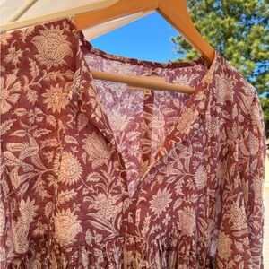 Daughters of India Long Sleeve Dress in Red Floral