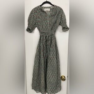 Daughters of India The Prairie Midi Dress Sage Green Size XS.