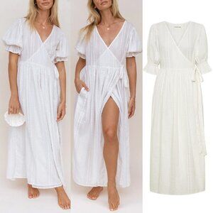 Daughters of India Uma Maxi Wrap Dress White Size M $239 Bohemian Beach Cotton