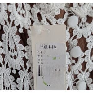 Crafted in Daughters of Simone’s signature lace, the Hollis gown blends minimalist bridal style with boho femininity. Fully lined through the body with sheer lace sleeves and back for an ethereal look. Originally retailed at a luxury bridal price point.