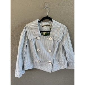 Daughters of the Liberation Womens Striped Jacket Blue Sz 08 Seersucker Crop buttons