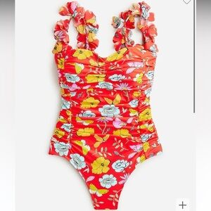 Dauphinette X J.Crew Ruched Flower-Strap One-Piece Swimsuit Plus Size 24 (3X)