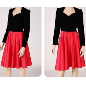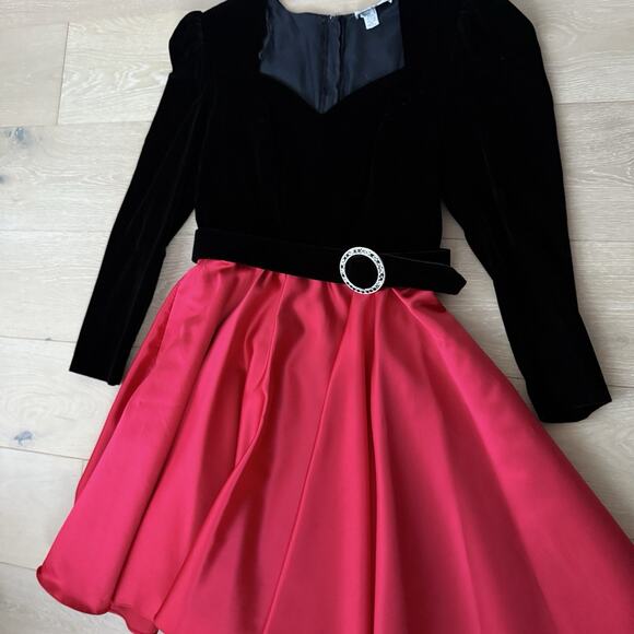 Dave Johnny Vintage 80s Black Velvet Red Satin Prom Party Holiday Dress 13-14