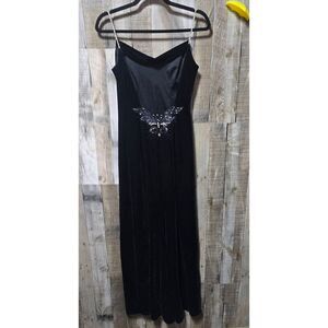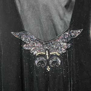Dave & Johnny Vintage 90s Velour Beaded Sequin Butterfly Maxi Dress
