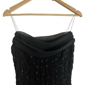 Dave and Johnny Vintage Black Metallic Lace Strapless Formal Gown Size 8