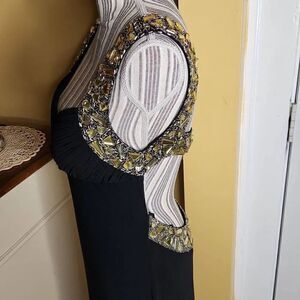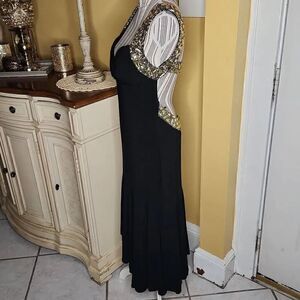 Gorgeous black Asymmetric open back Jeweled dress women's size 8