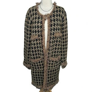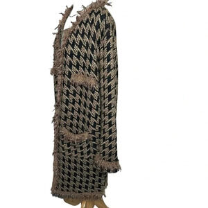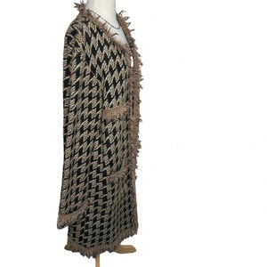 Davi + Dani 2X trendy black tan gold long fringe trim long sweater coat