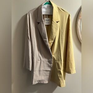 Stylish two-tone blazer with beige and yellow panels. Perfect for versatile wear. Modern and chic design. With pockets.