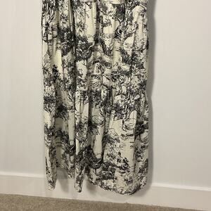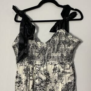 Davi & Dani Black Cream Toile Print Tiered Maxi Dress Women’s Size Large Smocked Bodice Ribbon Tie Straps