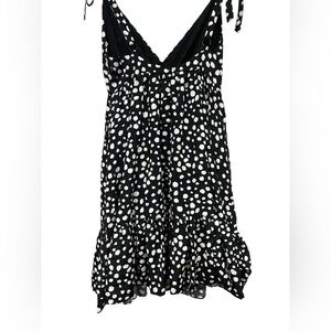 Davi & Dani Black & White Dot Ruffle Tiered Tie V Neck Size Medium Mini Dress